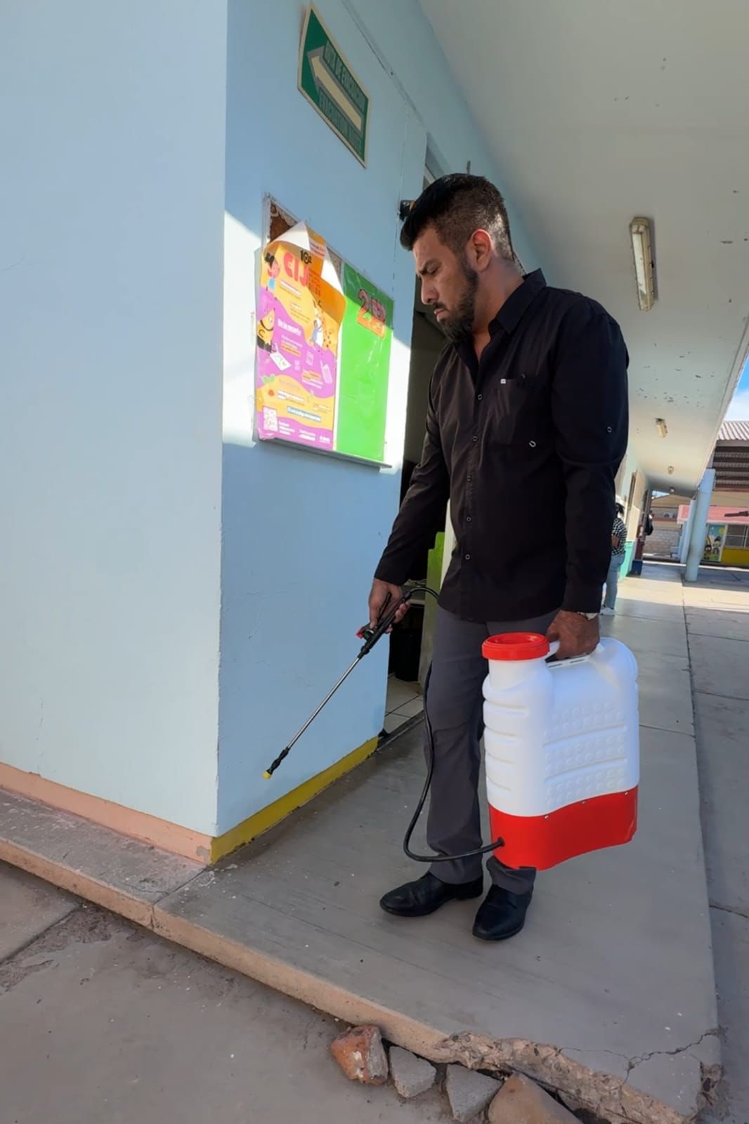 Guaymas, Sonora. — El diputado Sebastián Antonio Orduño Fragoza informó que este viernes su equipo realiza la fumigación de ocho escuelas en el municipio de Guaymas, como parte de las acciones permanentes para prevenir el dengue y la rickettsia, enfermedades que actualmente afectan con fuerza a la región.