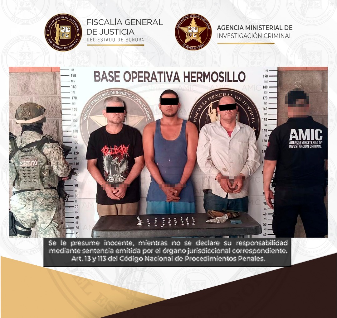 Agencia Ministerial de Investigación Criminal (AMIC) y la Secretaría de la Defensa Nacional (DEFENSA) permitió el aseguramiento de tres personas y diversas dosis de droga durante una diligencia de cateo realizada en un domicilio de la colonia Insurgentes, en Hermosillo.