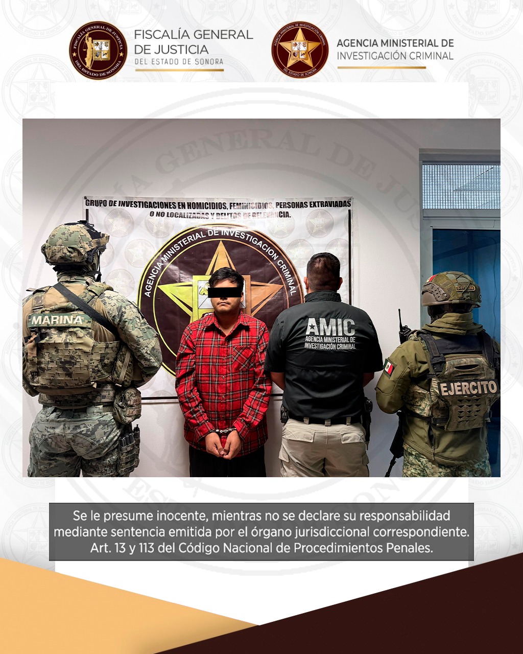 Como ya se sabe, Miguel Ángel “N” fue capturado la madrugada del 9 de diciembre en una acción de cateo por personal de la Agencia Ministerial de Investigación Criminal (AMIC), con apoyo de la Secretaría de Marina (SEMAR) y la Secretaría de la Defensa Nacional (DEFENSA), en un predio ubicado en la salida de Ciudad Obregón hacia Navojoa.