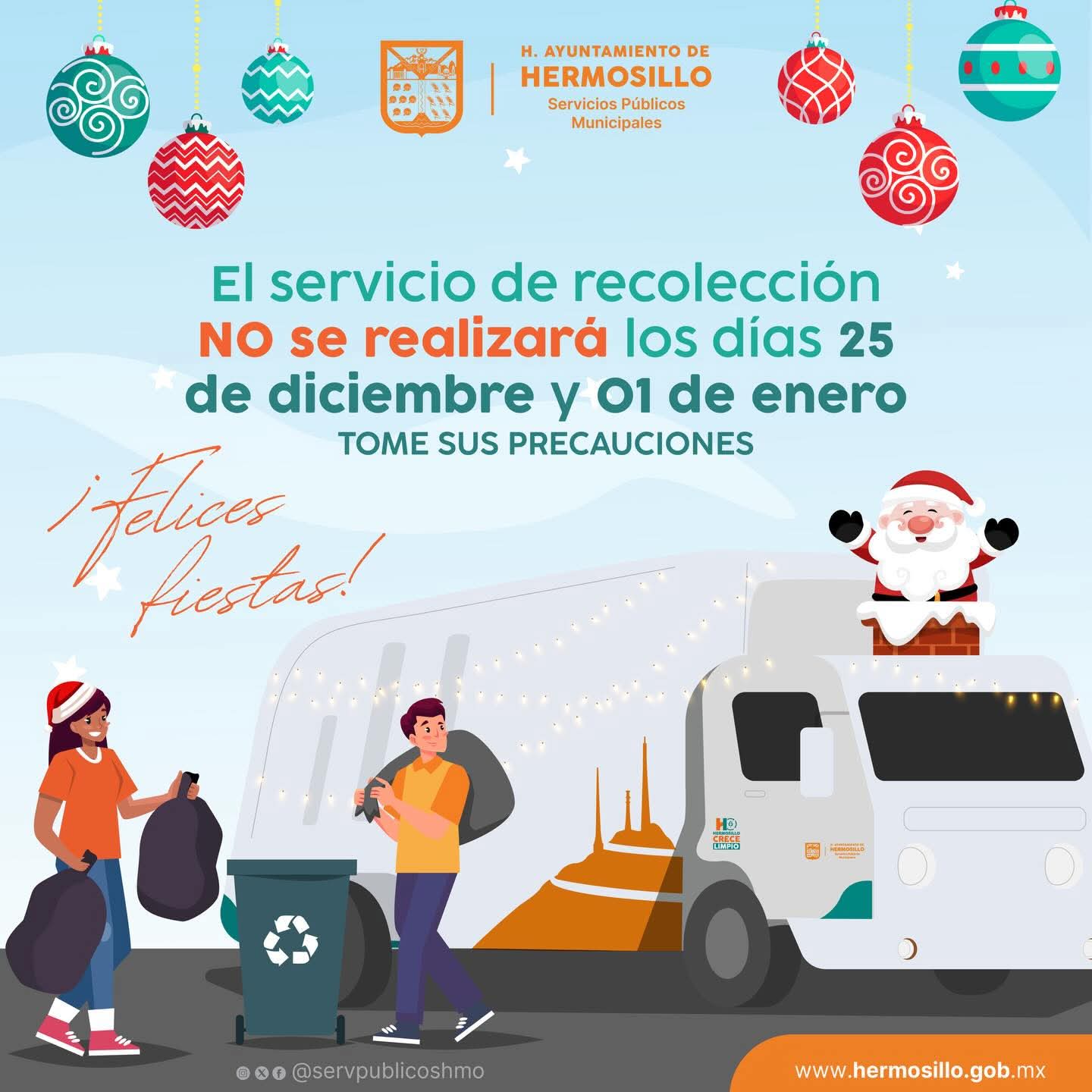 Informa Ayuntamiento de Hermosillo suspensión de servicio de recolección los días 25 de diciembre y 1 de enero