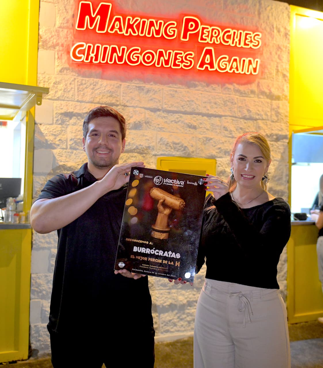 Hermosillo, Sonora; 29 de diciembre, 2025.- El inconfundible sazón de "Burrócratas" los llevó a coronarse como "El Mejor Perche de La H", distintivo que Fernanda Cisneros Rodríguez, directora de Desarrollo Turístico de la Agencia Municipal de Desarrollo Económico (AMDE) entregó por su sobresaliente participación en el "Perchefest 2025".