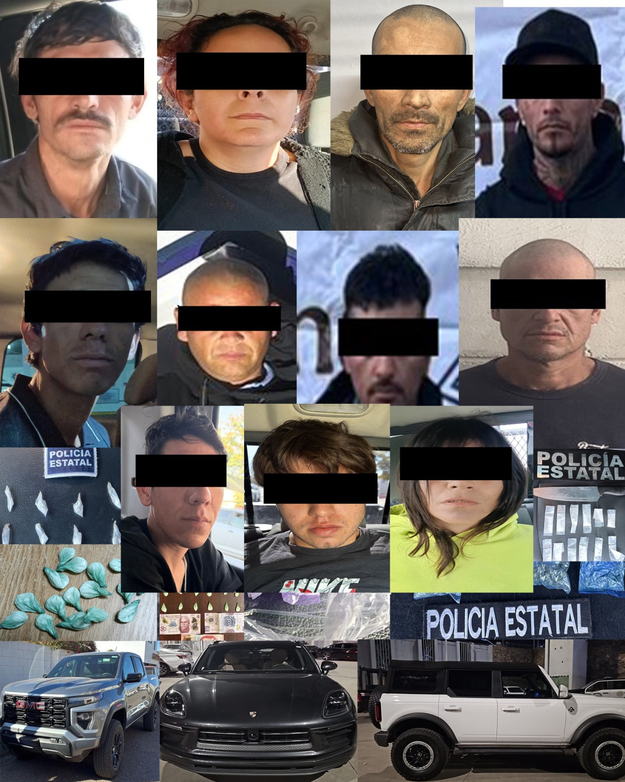 Durante operativos en el norte del estado, en la colonia Bellotas y la Zona Industrial de Nogales se recuperaron dos vehículos con reporte de robo. Además, se detuvo a Jorge “N” en Lomas de Nogales, en posesión de 18 envoltorios con narcótico, y en la colonia Bolívar se arrestó a Carlos “N” con 10 bolsas de hierba verde.