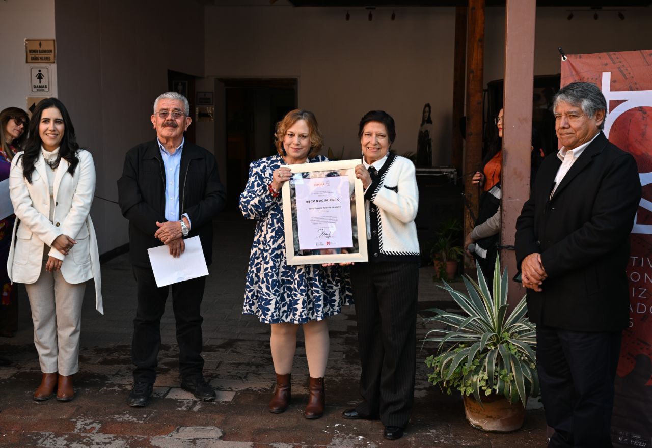 Al recibir el reconocimiento, Yolanda Jaramillo agradeció a las autoridades del Gobierno de Sonora y a la organización del FAOT 2026, además de hacer un repaso por sus cincuenta años de trayectoria por las artes visuales.