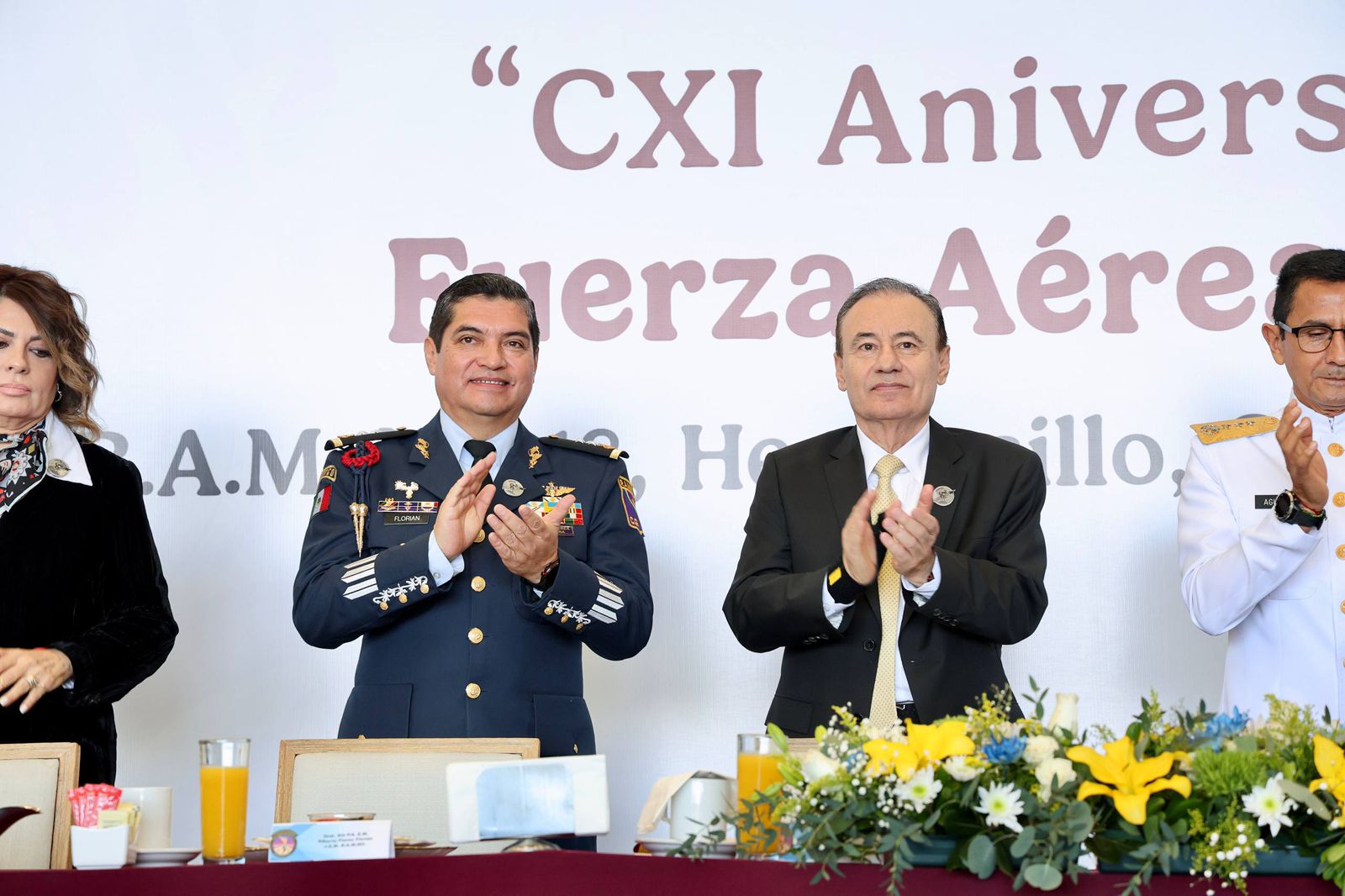 “A nombre del pueblo de Sonora, reconozco cumplidamente a los pilotos, a los técnicos que mantienen la flota, a los comandantes y a cada una, a cada uno de los integrantes que viste con orgullo el uniforme de la Fuerza Aérea Mexicana. Gracias por su sacrificio, lealtad y por proteger nuestro cielo y extender su mano solidaria siempre cuando más se les necesita. Gracias eternamente a cada una, a cada uno de ustedes”, indicó.