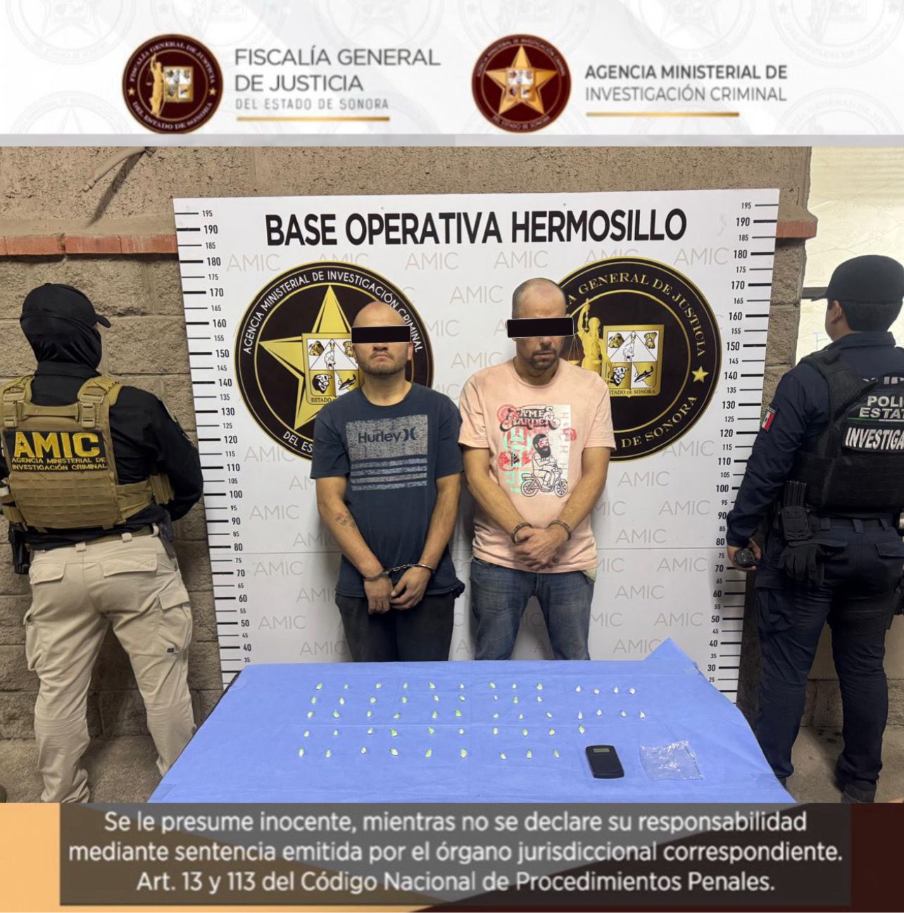 Hermosillo, Sonora, 14 de febrero de 2026.- La Fiscalía General de Justicia del Estado de Sonora (FGJES) capturó en operativo conjunto a dos sujetos por narcomenudeo en Hermosillo.