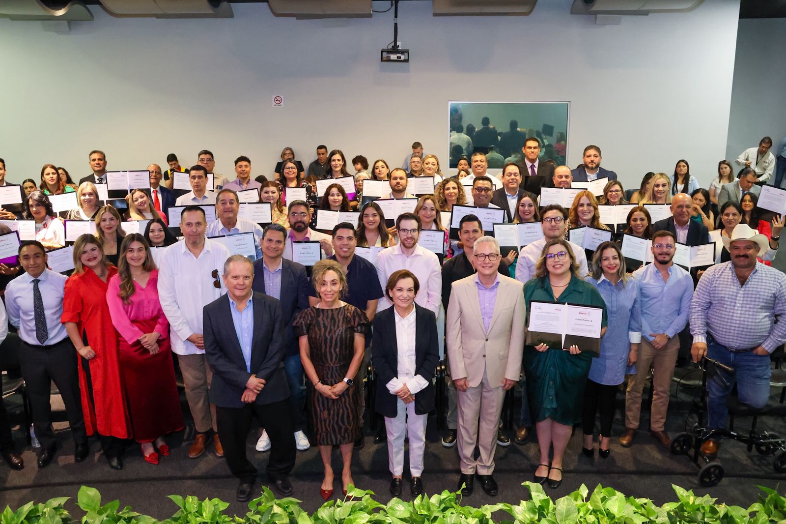 En este acto, la secretaria de Anticorrupción y Buen Gobierno, María Dolores del Río, entregó constancias de terminación de estudios a 43 servidoras y servidores públicos, quienes concluyeron satisfactoriamente este proceso formativo, en cumplimiento de los requisitos académicos establecidos, fortaleciendo así sus capacidades en materia de control, transparencia, rendición de cuentas y mejora de la gestión pública.