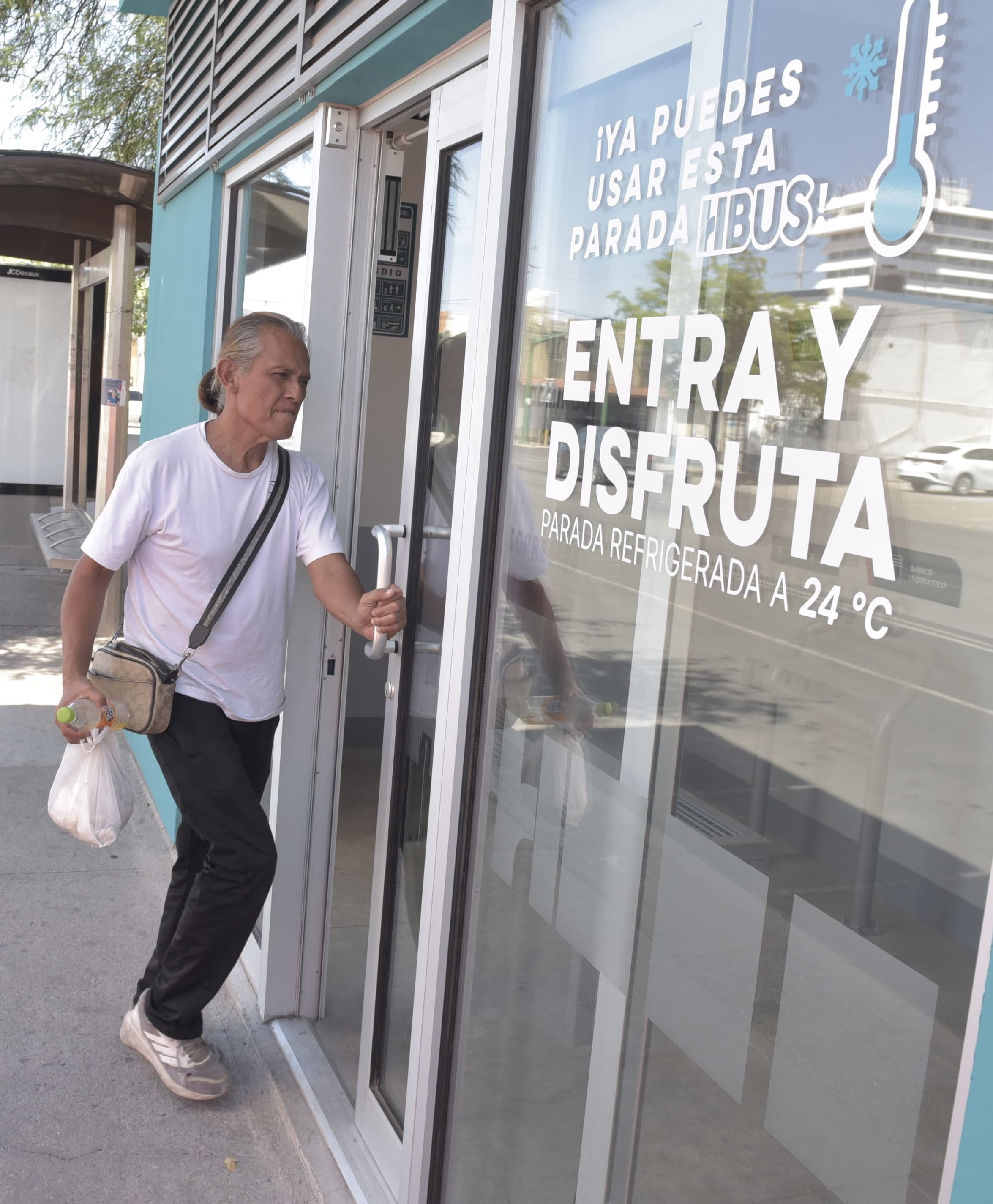 Hermosillo, Sonora, 5 de octubre, 2025.-* Beneficios como videovigilancia 24/7, refrigeración, internet wifi, visualización de rutas en tiempo real, módulos de recarga de teléfonos móviles, entre otros beneficios cuentan las paradas funcionando del Gobierno de Hermosillo.