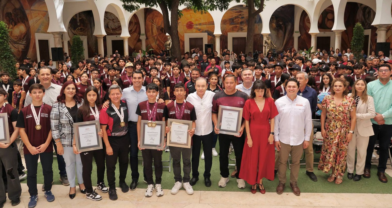 Ayer, en el patio central de Palacio de Gobierno estaban todos los jóvenes atletas que compitieron en diversas disciplinas; sus entrenadores y sus padres y madres con el pecho henchido de orgullo escuchando las palabras del gobernador que entregó estímulos económicos por cinco millones 718 mil pesos para 139 atletas y entrenadores.