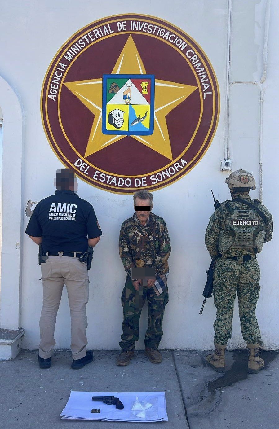 General Plutarco Elías Calles, Sonora, 23 de octubre de 2025.-* Durante un operativo conjunto entre la Agencia Ministerial de Investigación Criminal (AMIC) y la Secretaría de la Defensa Nacional (DEFENSA), se logró la detención de un hombre en posesión de un arma de fuego y varios envoltorios con droga en la colonia Centro, en Sonoyta.