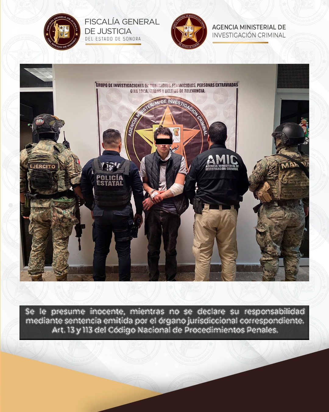La Fiscalía General de Justicia del Estado de Sonora (FGJES) reitera su compromiso de continuar con acciones firmes contra objetivos prioritarios y delitos de alto impacto, garantizando el acceso a la justicia para las víctimas y el fortalecimiento del Estado de Derecho.
