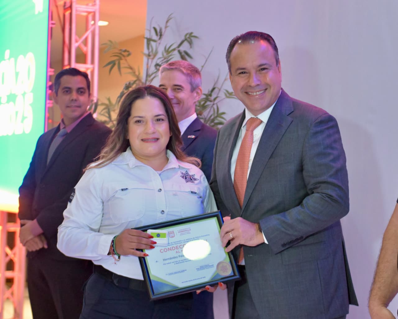 Acompañado de Drew Hoster, cónsul general de los Estados Unidos en Hermosillo, Toño Astiazarán destacó que eso no es producto del gobierno, sino que es por lo que los policías hacen a diario por la ciudad, por lo cual, no sólo se tiene que reconocer, agradecer y ser empáticos con quienes el día de hoy han recibido este reconocimiento, pero también para quienes hoy ya no están.