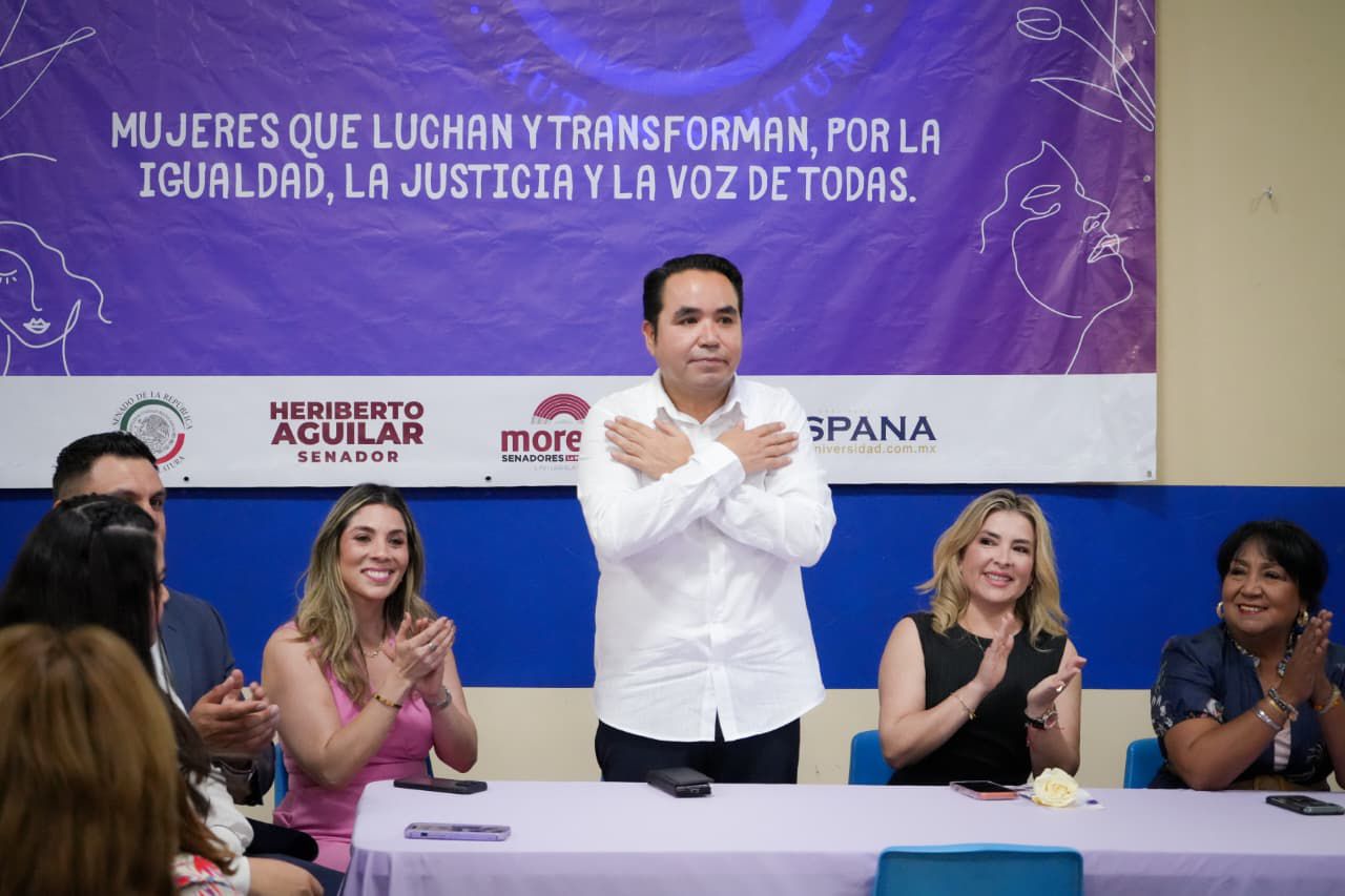 Aguilar Castillo reiteró que seguirá impulsando desde el Senado iniciativas que amplíen derechos y garanticen igualdad de oportunidades, y enfatizó: “hay que decirlo con claridad: ninguna de estas conquistas fue una concesión; son el resultado de la lucha de las mujeres, porque junto a las mujeres todo, sin las mujeres nada.”