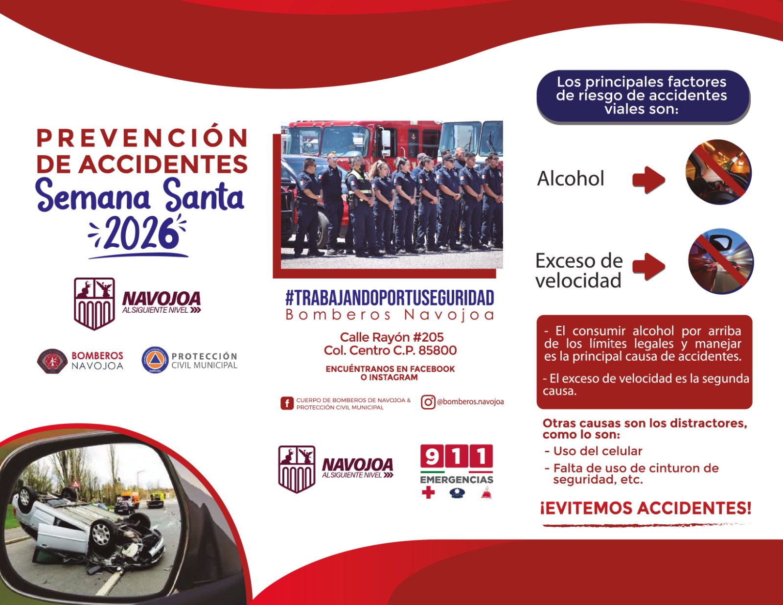 “Estamos llamando a la conciencia de la ciudadanía, sobre todo en lo del consumo de cerveza”, apuntó, “si ingieren bebidas embriagantes no manejen auto, utilicen conductor designado o un viaje por plataforma, y a quienes salen de la ciudad aseguren bien sus casas y encárguenla a un familiar o vecino, cierren llaves del gas, gas, y lleven consigo botiquín de primeros auxilios”.