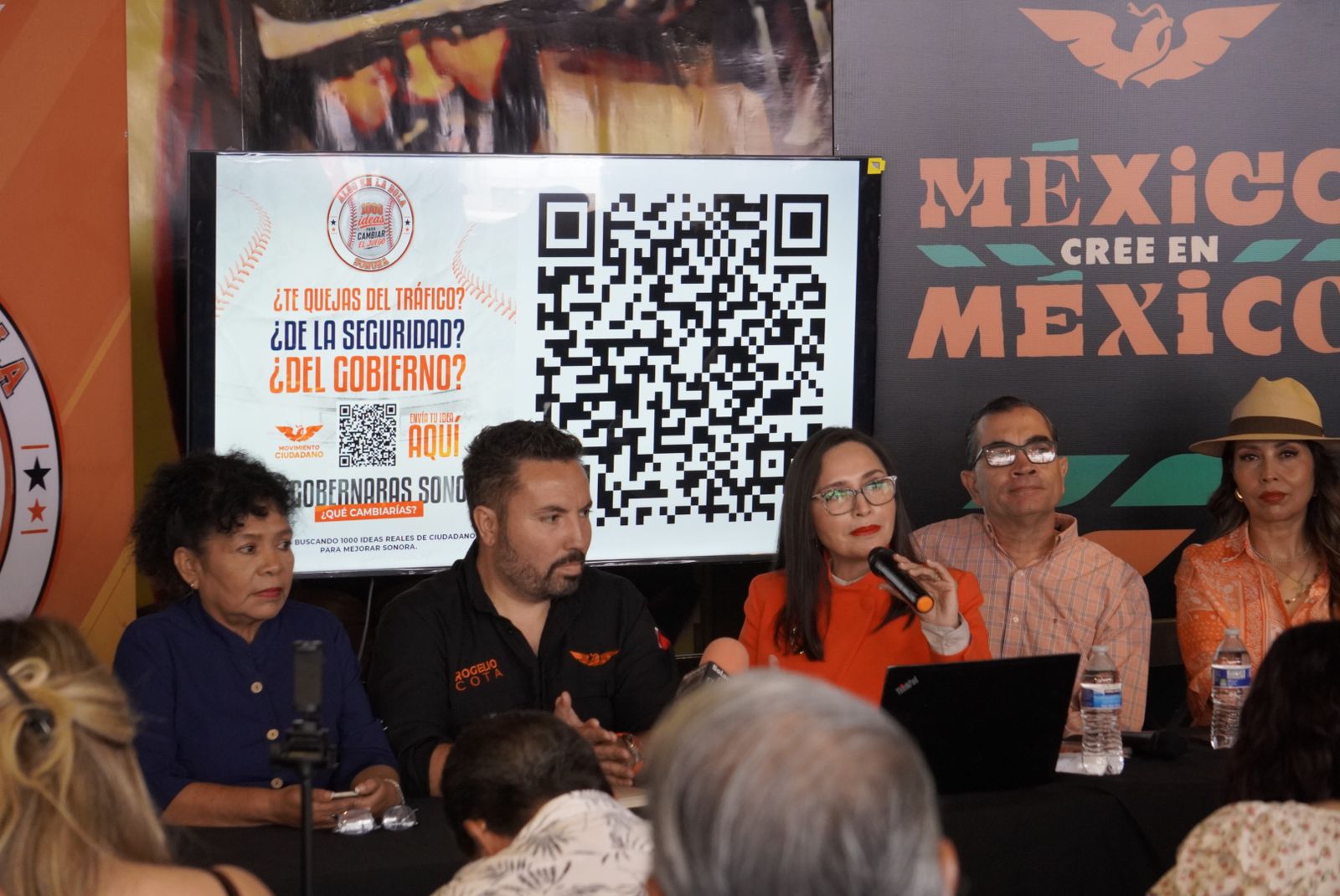 Hermosillo, Sonora, 29 de abril de 2026. En rueda de prensa, la Coordinadora Estatal de Movimiento Ciudadano en Sonora, Natalia Rivera Grijalva, presentó el programa "Algo en la bola: mil ideas para cambiar el juego", una iniciativa enfocada en impulsar ideas y propuestas ciudadanas para mejorar la situación del estado.